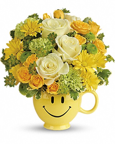 Brighten anyone’s day with this cheerful burst of yellow roses, daisies, and button poms — all tucked inside a smiley-face keepsake mug. Stay Sunny, Honey is the ultimate mood booster for birthdays, get-well wishes, or just because.